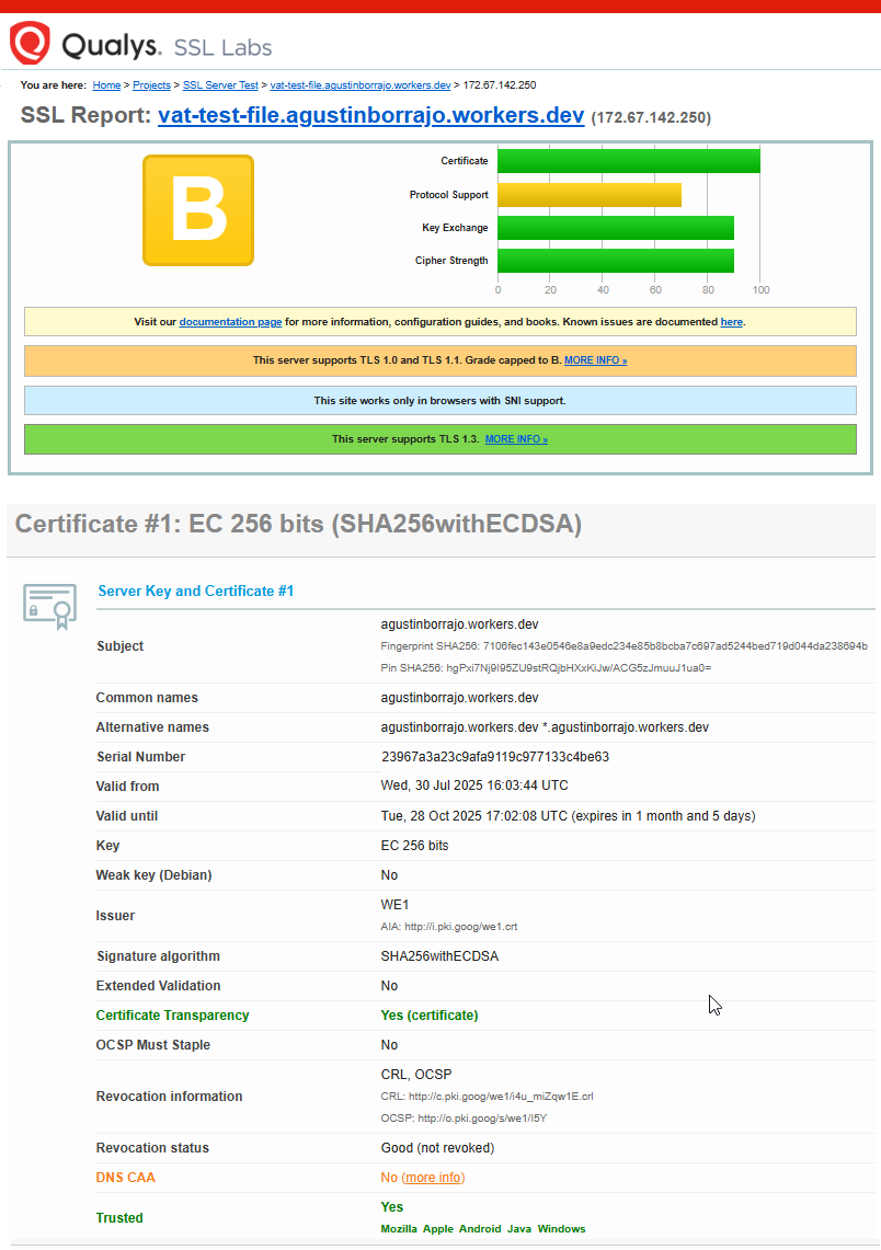 Discovering cybersecurity findings on internet facing web apps using public scanning tools. 🔽 Cloud based Web Applications heavily depend on the stability and integrity of the platforms where they reside. A few considerations need to be taken into account during the evolution of the Web Application Lifecycle. Lead developers, Middleware Engineers and System Architects often need to certify their WebApp level of cybersecurity compliance. Before performing a fully fledged Vulnerability Assessment Test, a quick exploration can be performed using public scanning tools. Even if no auhentication credentials are supplied or exchanged, Cloud platforms provide clues about their Web Services and protocols. The below list shows the type of CVEs and cybersec findings that can be discovered if your WebApp is exposed to the internet : 🔸 CRYPTOGRAPHY: Web Server Certificates, Protocols, Cipher Suites, Signature Algorithm, Subject Alternative NamesA thorough review of the cryptographic integrity of your development is always a good starting point. Before promoting your WebApp to Production, there is a need to be aware of all URLs that will be consumed by the Application. WebApps eventually need to perform a query to a backend that is part of their domain name and such call needs to be secured. When your WebApp executes a query against other domains, the secured connection is usually provided by the queried platform. Modern Cloud Computing platforms take care of the vast majority of the certificate needs and crypto requirements. Automated rotation of WebApp certs and ciphersuite remediations are part of the base line services offered by most providers. When the web server certificate is manually generated and uploaded, additional care needs to be applied. In other words, the WebApp certificate properties and values are part of the Application Architecture and provisioning. During the development and UAT stages, public scanning tools can be used to confirm how your WebApp behaves. 🔻 The below properties can be explored using Qualys SSL LABs, CryptCheck, CRT : Subject, Common Names, Subject Alternative Names, Issuer, DNS Certification Authority Authorization (CAA) Fingerprint SHA256, PIN SHA256, Serial Number, Valid From, Valid Until, Key/Auth/#ofBits, Signature algorithm Revokation status + Revokation info, CRL, Trusted status, Protocols, Accepted Cipher Suites, Weak Cipher Suites Handshake simulations, Protocol Negotiations, HTTP requests 🔻 A table-format supported ciphers suites list can be queried using CryptCheck : Cipher full name, Key exchange, Authentication, Encryption Type (e.g.:AES), Encryption Key Size, Encryption Block Size Mode, Message authentication code (MAC) Type & Size, Perfect Forward Secrecy (PFS)🔸 HOST HEADERS: Header Name, Property Value, Usage🔻 Some of the below Host Headers can be explored using Qualys SSL LABs, Cloudflare Radar and Probely Security Headers :Strict-Transport-Security (HSTS), X-Frame-Options, X-Content-Type-Options, Content-Security-Policy, Referrer-Policy Clear-Site-Data, X-Permitted-Cross-Domain-Policies, Permissions-Policy Cross-Origin-Embedder-Policy, Cross-Origin-Opener-Policy, Cross-Origin-Resource-Policy X-XSS-Protection, Feature-Policy, Content-Type, Content-Length, Cache Control, Set-Cookie🔸 COMBINED SECURITY REPORT:🔻 Some of the below property values can be explored using Immuniweb : Fingerprinted CMS Components & Vulnerabilities GDPR Compliance Test, PCI DSS Compliance Test, CSP Content Security Policy Test Raw HTTP Header, frame-ancestors, object-src, script-src, require-trusted-types-for DNSSEC (Domain Name System Security Extensions), HTTP METHODS ENABLED HTTP VERSIONS, NPN (Next Protocol Negotiation), Application Level Protocol Negotiation, Web Application Firewall 🔻 The below combination of properties can be scanned with the help of Mozilla HTTP Observatory and clickjacker.io : Cross Origin Resource Sharing (CORS), Strict-Transport-Security (HSTS) Strict-Transport-Security (HSTS), X-Frame-Options, X-Content-Type-Options, Cross-Origin-Resource-Policy Clickjacking protection via frame-ancestors, Raw server headers🔸 MALWARE:🔻 Some of the below objects can be explored using Sucuri Sitecheck combined with Quttera : Firewall Status, Malicious files, Suspicious files, External links, Blacklisted links, Blacklisted domains🔸TRY YOURSELF:🔻 The below VAT Test APP was used to provide the VAT Report Samples:🤖 VAT TEST APP (TLS/SSL): ⏩ https://vat-test-file.agustinborrajo.workers.dev/ ( TLS/SSL demo APP for VAT testing using above public tools )🤖 VAT TEST APP (non-SSL): ⏩ http://agustinborrajo.20m.com/vat-test-file.html ( non-SSL demo APP for VAT testing using above public tools )🤖 VAT TEST APP SAST: ⏩ https://sonarcloud.io/project/security_hotspots?id=agustinborrajo_vat-test-page🤖 VAT TEST APP REPO: ⏩ https://github.com/agustinborrajo/vat-test-page/📕 VAT REPORT SAMPLES: |